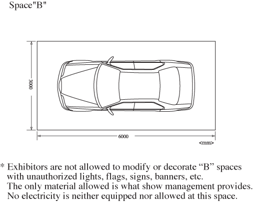 Space "B" is designated as a vehicle only display space. Each exhibitor can rent up to 2 spaces adjacent to each other. No electricity is neither equipped nor allowed at this space.