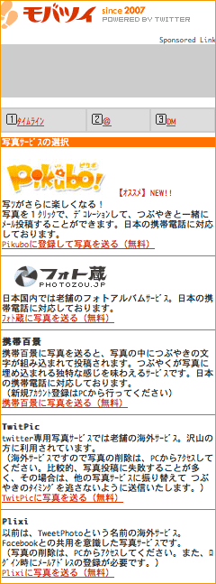 各種サービスが表示されます。この中から「TwitPic」を選択してください。「TwitPicに写真を送る(無料)」をクリック!