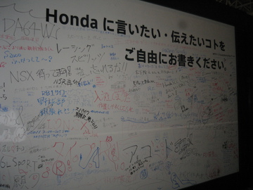 HONDAブースの裏には、メッセージを書ける壁があるんです!