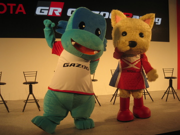 トヨタブースでは、GAZOO Racingのキャラクターも待ってるヨ。