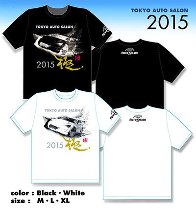 2015年東京オートサロンの来場記念に最適なオリジナルグッズ「垂井ひろし TAS公式Tシャツ」を今年も販売します。サイズはM、L、XLで、各2,800円(税込)となります。