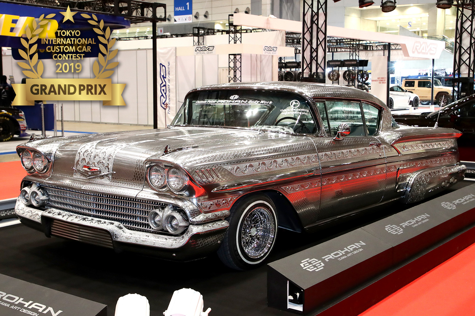 東京国際カスタムカーコンテスト2019 グランプリ決定! Custom Car Contest 東京国際カスタムカーコンテスト2019 グランプリ 車両番号 21101 車両名 ROHAN METAL IMPALA 出展者名 ROHAN 東京国際カスタムカーコンテスト2019受賞車両 コンセプトカー部門 車両番号 10805 車両名 HKS TRB-04 出展者名 株式会社エッチ・ケー・エス 車両番号 21802 車両名 JUKE Personalization Adventure Concept 出展者名 日産自動車株式会社 車両番号 96701 車両名 Modulo Neo Classic Racer 出展者名 ホンダアクセス ドレスアップカー部門 車両番号 42603 車両名 NATS RX-STANCE 出展者名 NATS 日本自動車大学校 車両番号 12601 車両名 HOONITRUCK 出展者名 TOYO TIRES 車両番号 12004 車両名 MAGNUM OPUS R35GT-R 出展者名 VARIS チューニングカー部門 車両番号 11103 車両名 SONKIMLAND WEST FIELD by RE雨宮 出展者名 RE雨宮 車両番号 110307 車両名 スカイライン GT-R 出展者名 TOPSECRET 車両番号 90302 車両名 アクティブストリートワイドボディーBCNR33 出展者名 ガレージアクティブ セダン部門 車両番号 72003 車両名 WRX STI Rally Concept 出展者名 SUBARU/STI 車両番号 80303 車両名 Prussian Blue CROWN 出展者名 M'z SPEED 車両番号 81114 車両名 センチュリー GRMN 出展者名 TOYOTA GAZOO Racing ミニバン・ワゴン部門 車両番号 62701 車両名 L-TIDE ODYSSEY うさぎSP 2019 出展者名 エルティード 車両番号 101601 車両名 VELLFIRE NE-Style Ver.2 出展者名 NE-Style Netz TOYOTA Hyogo 車両番号 111301 車両名 S-craft レヴォーグ 出展者名 t-get SUV部門 車両番号 96502 車両名 ジムニー ヴァルド ブラックバイソンエディション 出展者名 エヌズ・ステージ 車両番号 93702 車両名 DAMD little G. SIERRA 出展者名 DAMD Inc. 車両番号 36101 車両名 KADDIS XTREME PRADO150 出展者名 ROADHOUSE Kカー・コンパクトカー部門 車両番号 112602 車両名 G−mini 出展者名 OEP222 車両番号 101703 車両名 Vitz amore(アモーレ) 出展者名 専門学校トヨタ東京自動車大学校 車両番号 43407 車両名 N-VANチュートリアル福田カスタム仕様車 with FLEX 出展者名 Honda インポートカー部門 車両番号 21101 車両名 ROHAN METAL IMPALA 出展者名 ROHAN 車両番号 85701 車両名 EDGE CUSTOMS チャレンジャー S 出展者名 EDGE CUSTOMS 車両番号 25602 車両名 DELTA fenice 105 出展者名 SANO design × 畑野自動車