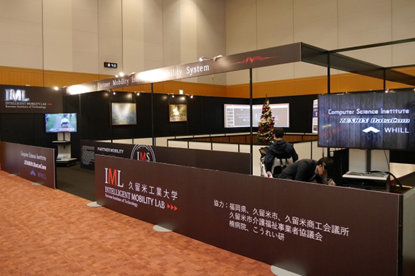 久留米工業大学は、来場者向けに電動車イスによる自動運転の実演、試乗を行なう。