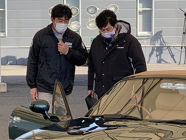 広い屋外会場に出展予定だったクルマが集まり、ネットLive配信で一台一台紹介することとなりました。