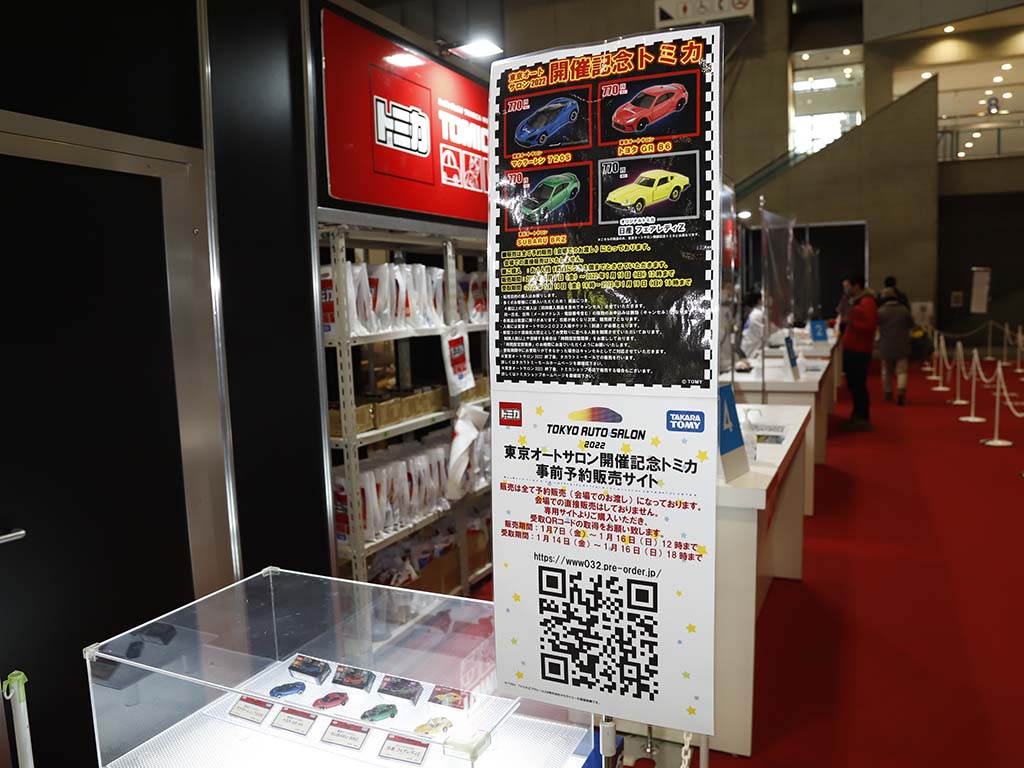 例年と異なるのは、「東京オートサロン2022 開催記念トミカ」および「オリジナルトミカ」はインターネットにおける事前予約販売となること。予約販売期間は1月7日17時から1月16日の12時までとなっており、会場では予約購入したトミカを受け取る形式となる。