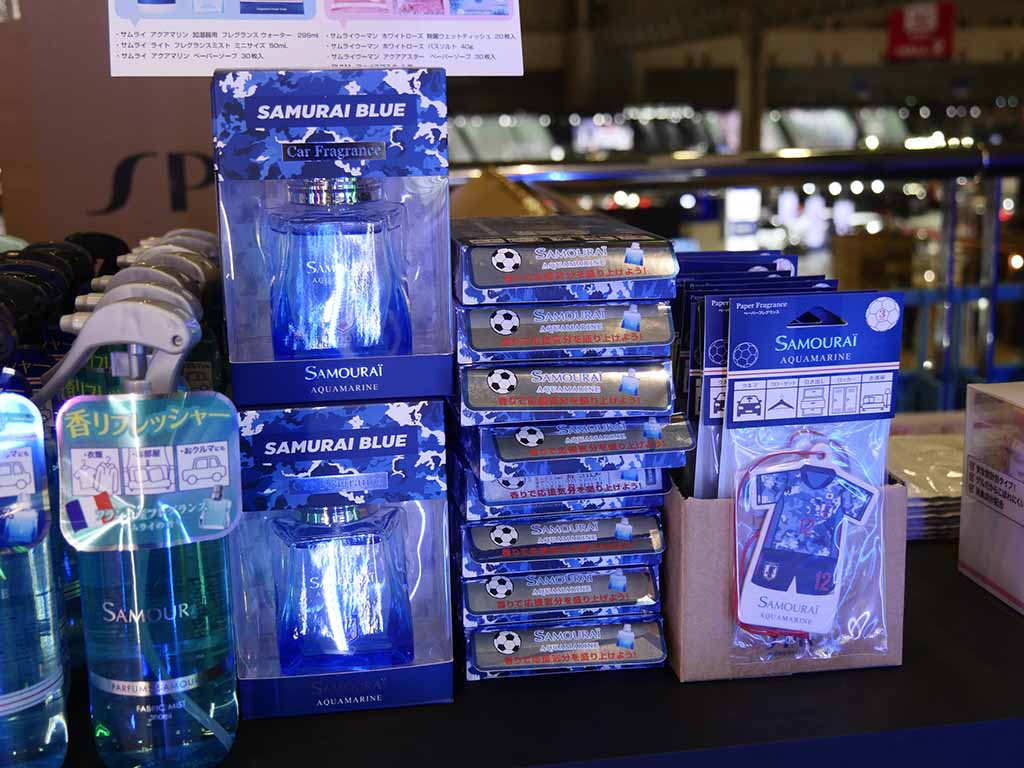 カーライフに欠かせないアイテムのひとつとなっているカーフレグランス。その中でも、特に注目を集めているのが有名香水ブランド「SAMOURAI(サムライ)」です。今年も西2ホールの2階通路にブースが登場し、様々な商品を会場限定特価で販売しています。
