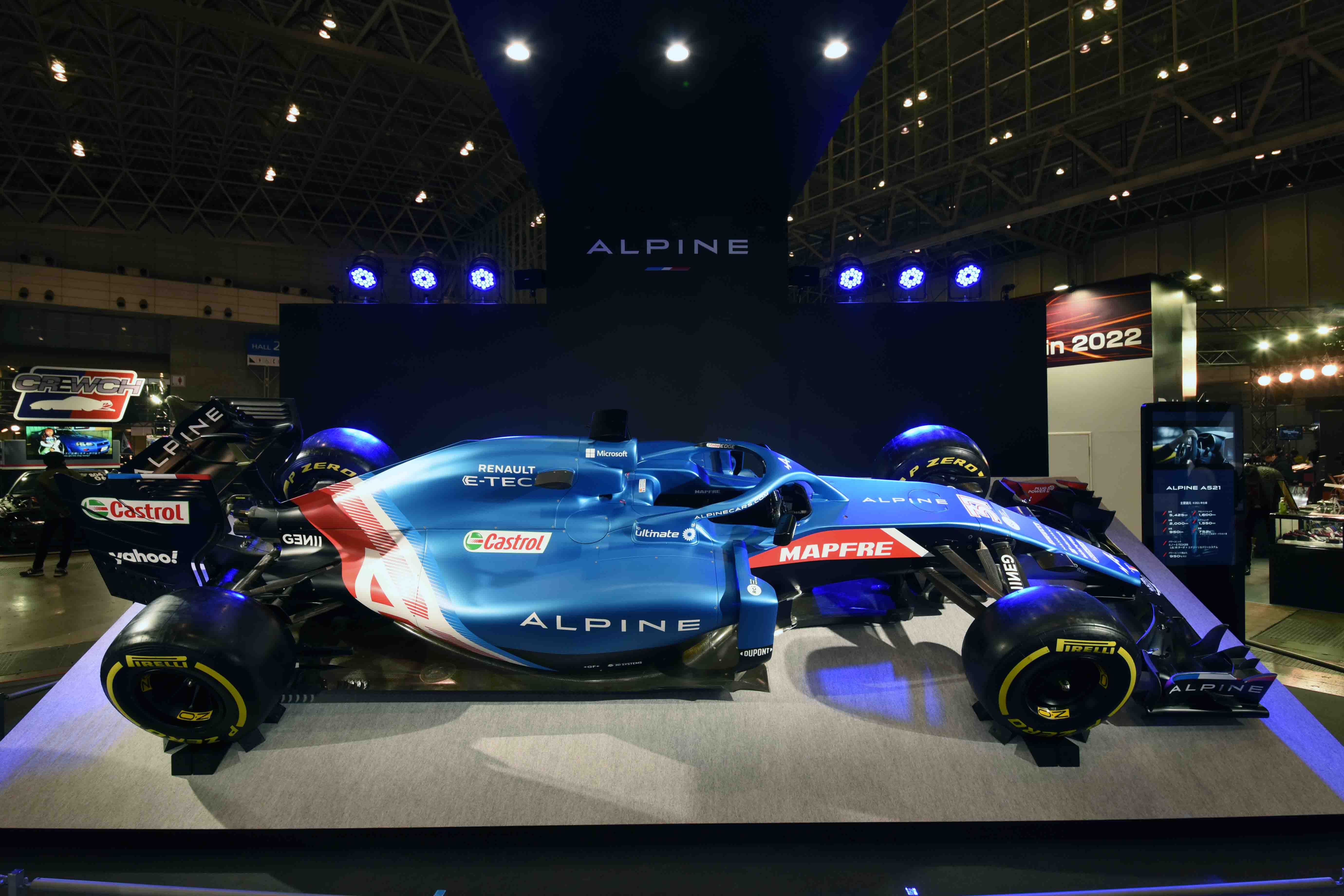 ルノー・ジャポンのブースでは、ルノーとアルピーヌの各ブランドからそれぞれ1台ずつ車両が展示され、さらにF1マシンが展示されました。