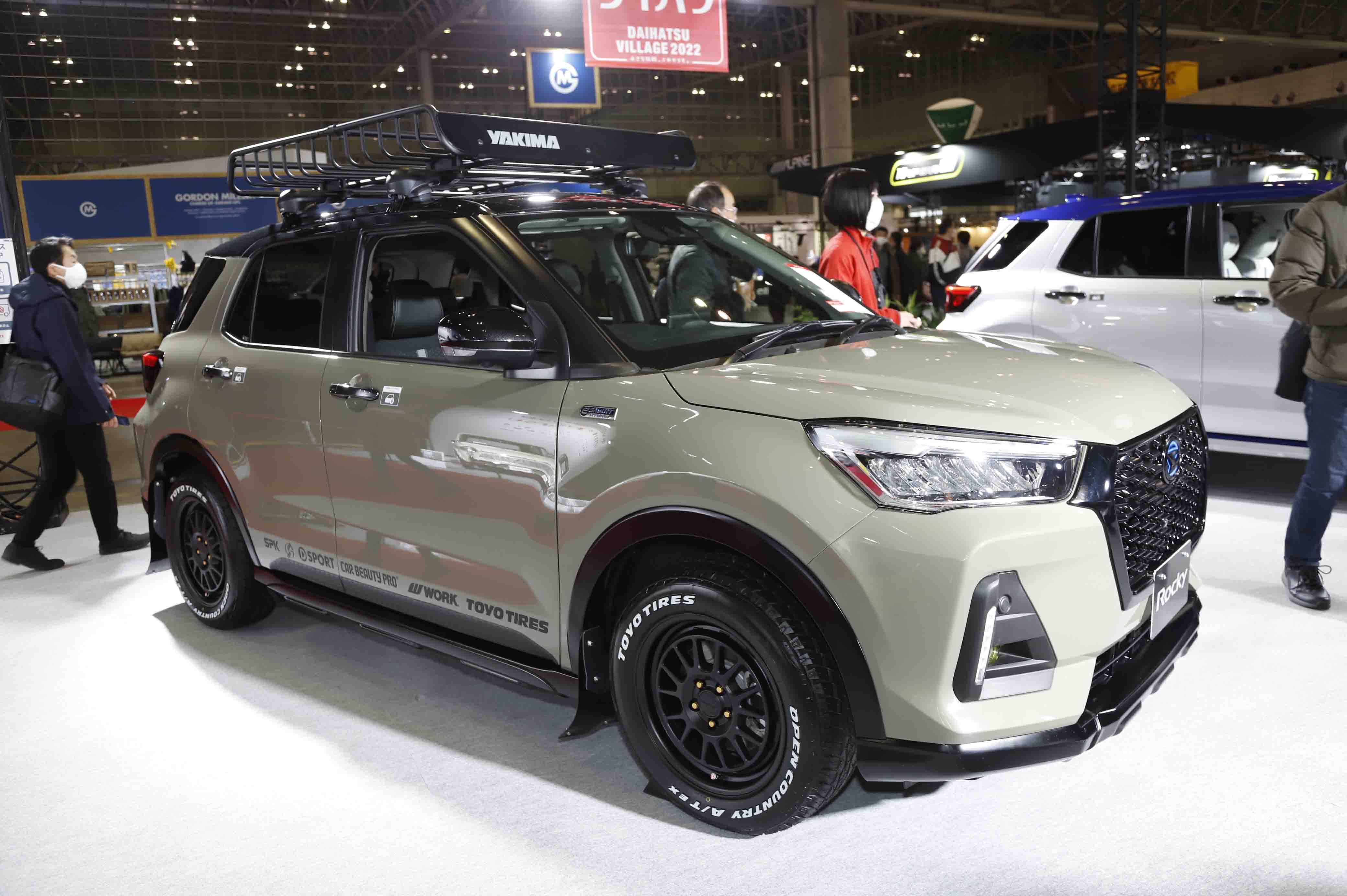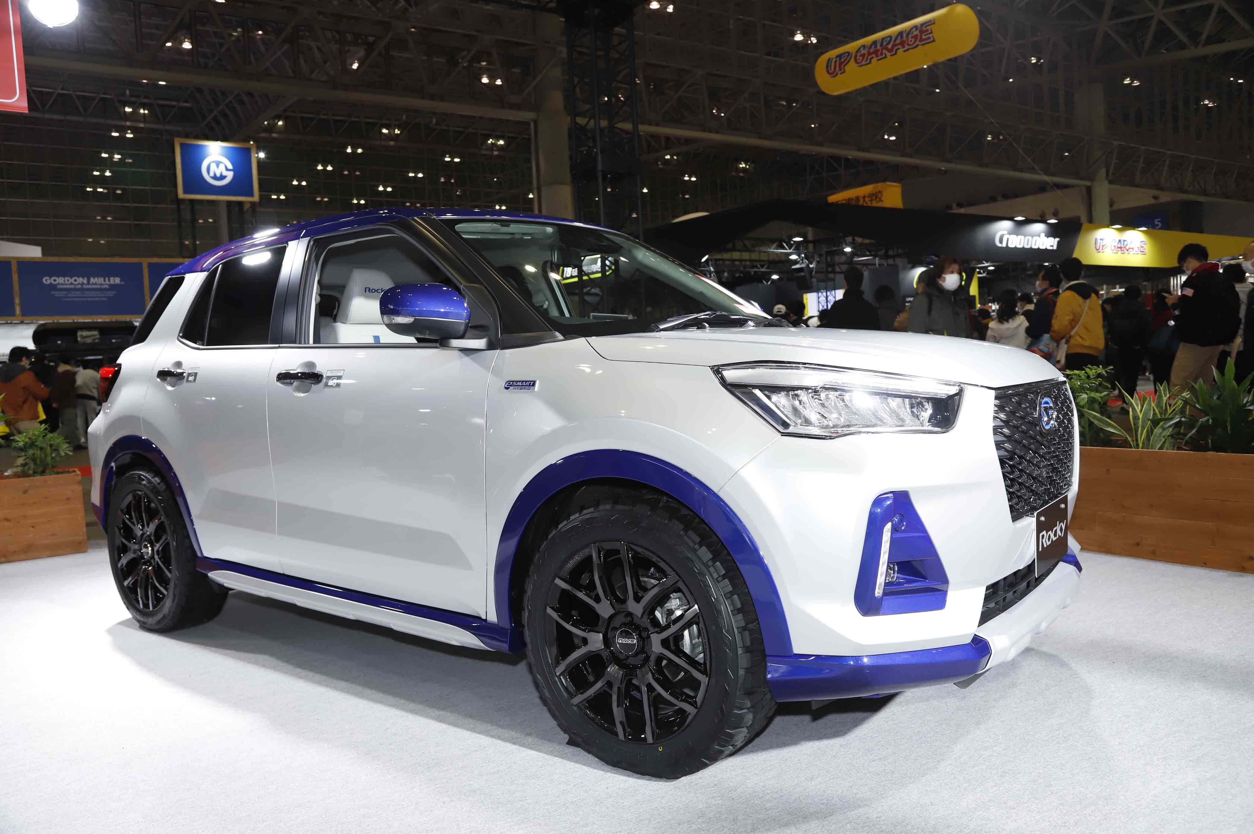 また、ダイハツのハイブリッド技術「e-SMART HYBRID」を搭載したコンパクトSUV、ロッキーをベースとした2台のカスタムモデルにも注目です。