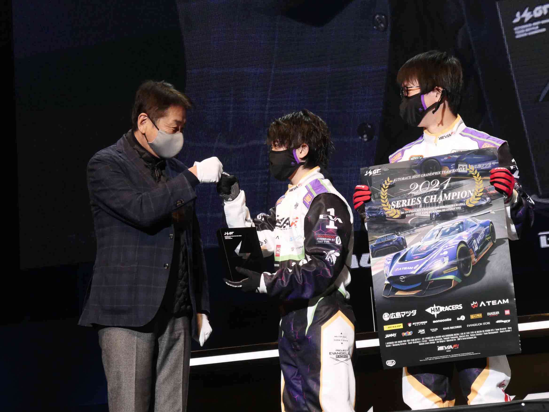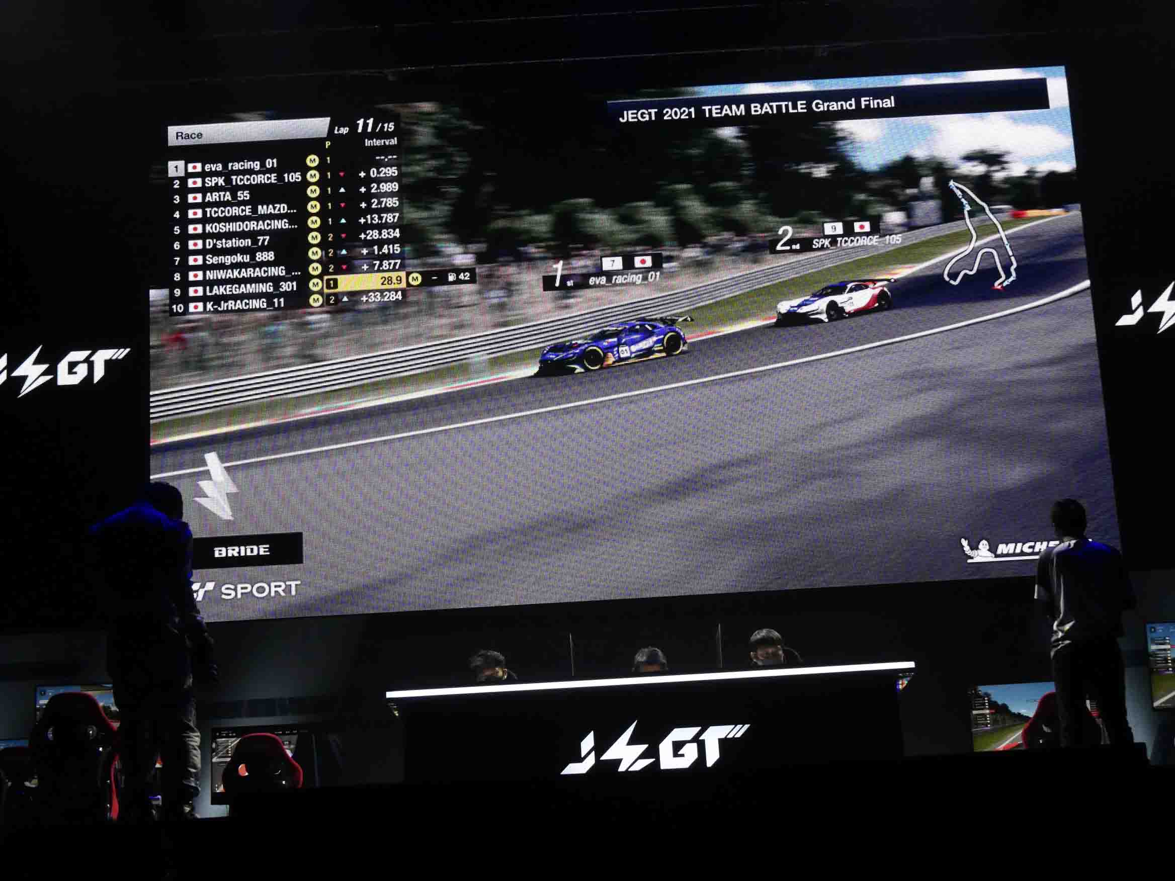 終盤まで続いたEVANGELION e-RACING with 広島マツダとTC CORSE SPK e-SPORT Racingの、2チームによるトップ争い。最終的には3人目のドライバー交代時で僅かな差を広げたEVANGELION e-RACING with 広島マツダが逃げ切って優勝。2位がTC CORSE SPK e-SPORT Racingとなりました。なおグランドチャンピオンには賞金200万円とチャンピオントロフィーが贈呈され、「実際のレース以上の賞金金額が凄い!」とゲスト解説の谷口信輝さんを唸らせるほどの注目度を証明したのでした。