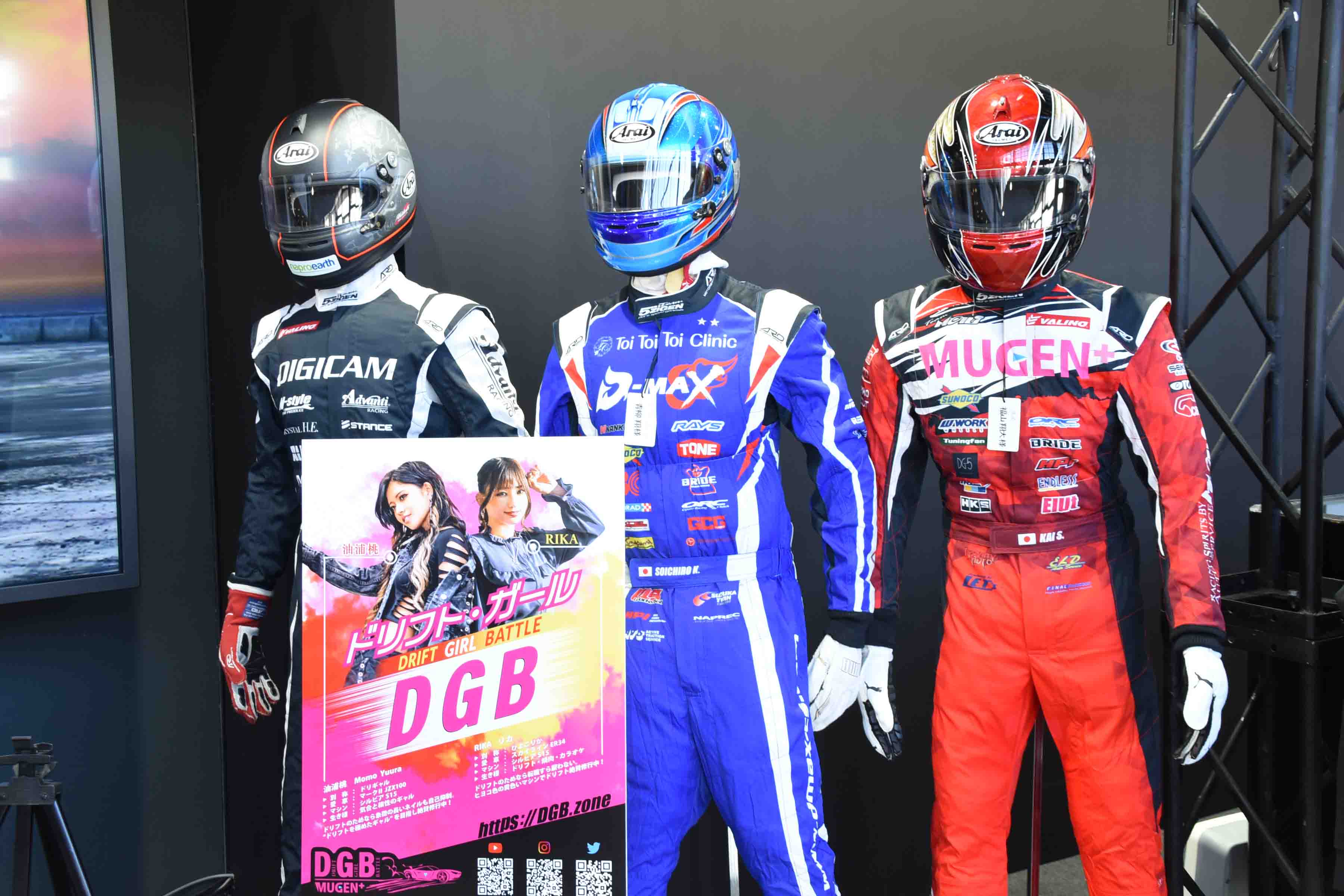 昨日制作発表が行われた映画「ALIVEHOON(アライブフーン)」のブースが登場しています。こちらは劇中に使用されたS15シルビア(中村直樹選手のWTC用車両)が展示され、さらには、DGBのドリフト・ガール2名も駆け付けPR活動を展開中です。