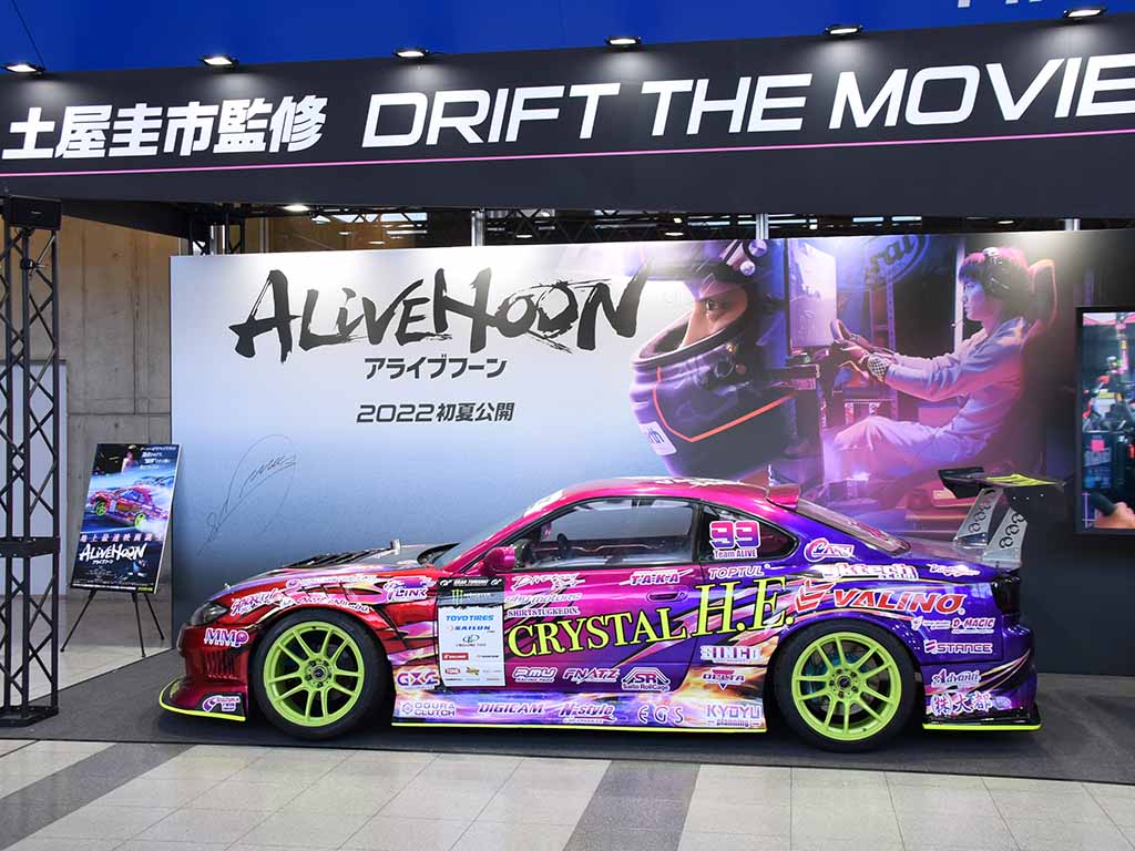 アライブフーンは2022年初夏に公開となる映画で、解散の危機に瀕したドリフトチームが天才ゲーマーを起用し、バーチャルとリアルの壁をブチ破っていくというストーリー。トップドリフターのCGゼロの迫力ある走りの映像が織り込まれているのが特徴です。実際に屋外イベント会場で、この日ドリフトのデモンストレーションランを行った日本のトップドリフターは、この作品の出演をしていることから、それらについてもコメントを寄せている。特に、この作品の中で、マシンのクラッシュシーンもあるのだが、ここもやらせもCGもなし、ということで、実際に車両をクラッシュさせた中村直樹選手は、2度ぶつけました。中途半端に当ててもダメだから、と真剣にクラッシュしたそうです。