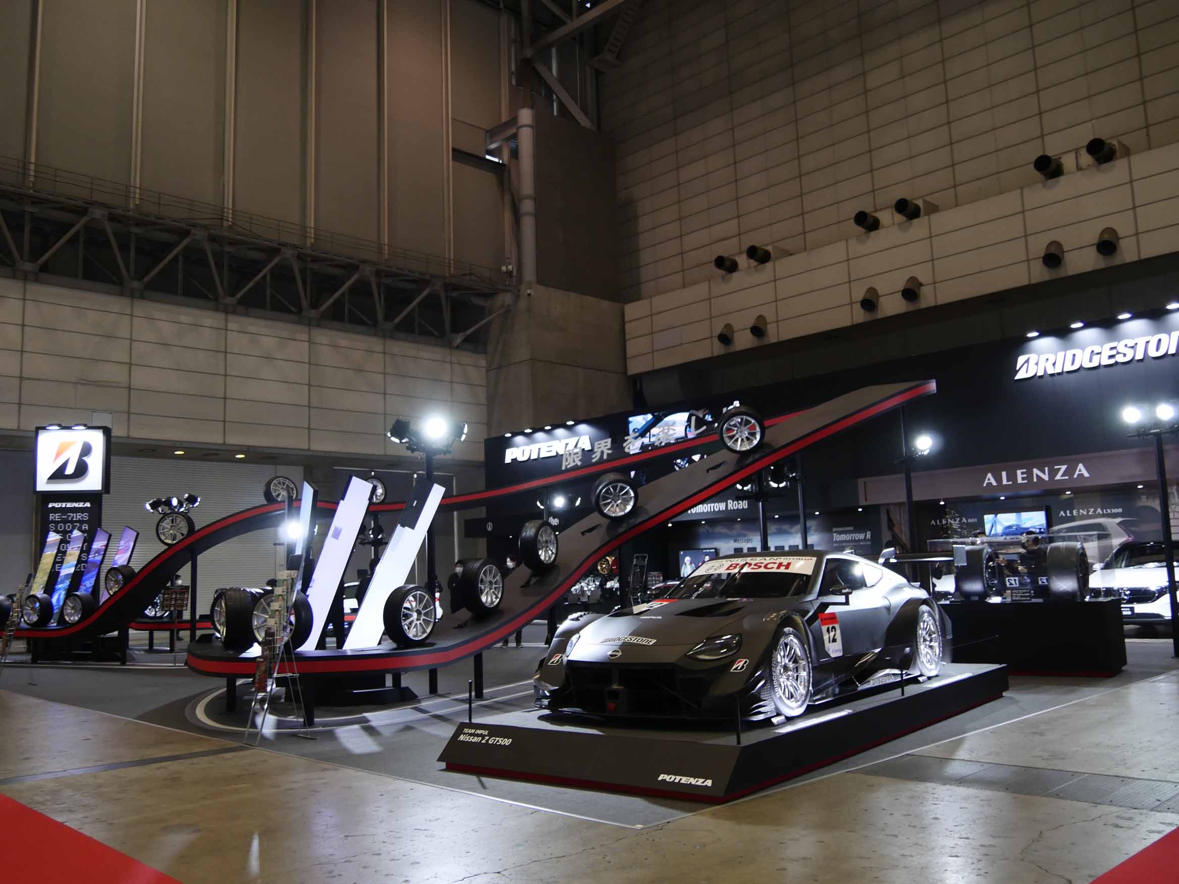 「10年後、20年後にも『走るわくわく』を提供しつづける」という想いを表現したブリヂストンブース。今年からスーパーGTに参戦する最新マシン、Nissan Z GT500がお出迎えしてくれるだけでも感動しますが、POTENZAの商品ラインナップを、サーキットをモチーフとしたブースデザインで表現した展示は必見です。