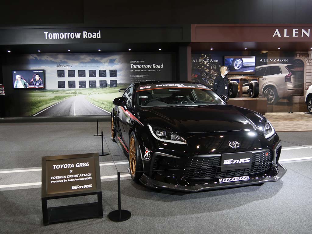また、POTENZA RE-71RSを装着したオートプロデュースボスのプロデュースによるTOYOTA GR86やPOTENZA A007Aを装着したBMW M4クーペコンペティションといった車両展示も充実。さらには、トップドライバーからのサイン入りメッセージボードを通して、未来に対する熱い想いを共有できる空間になっています。