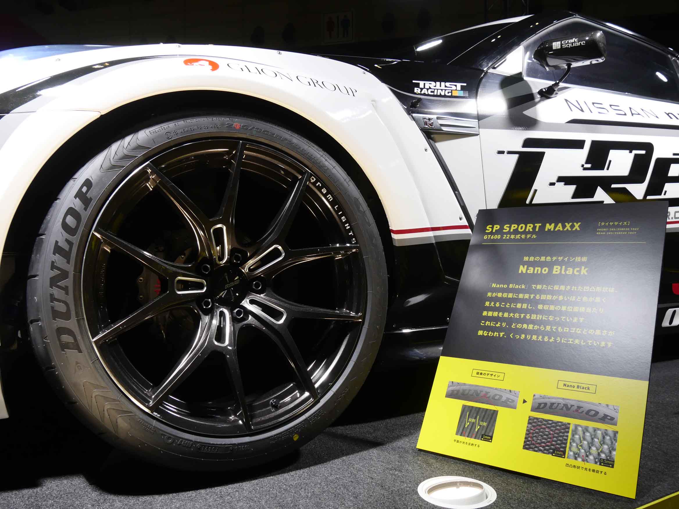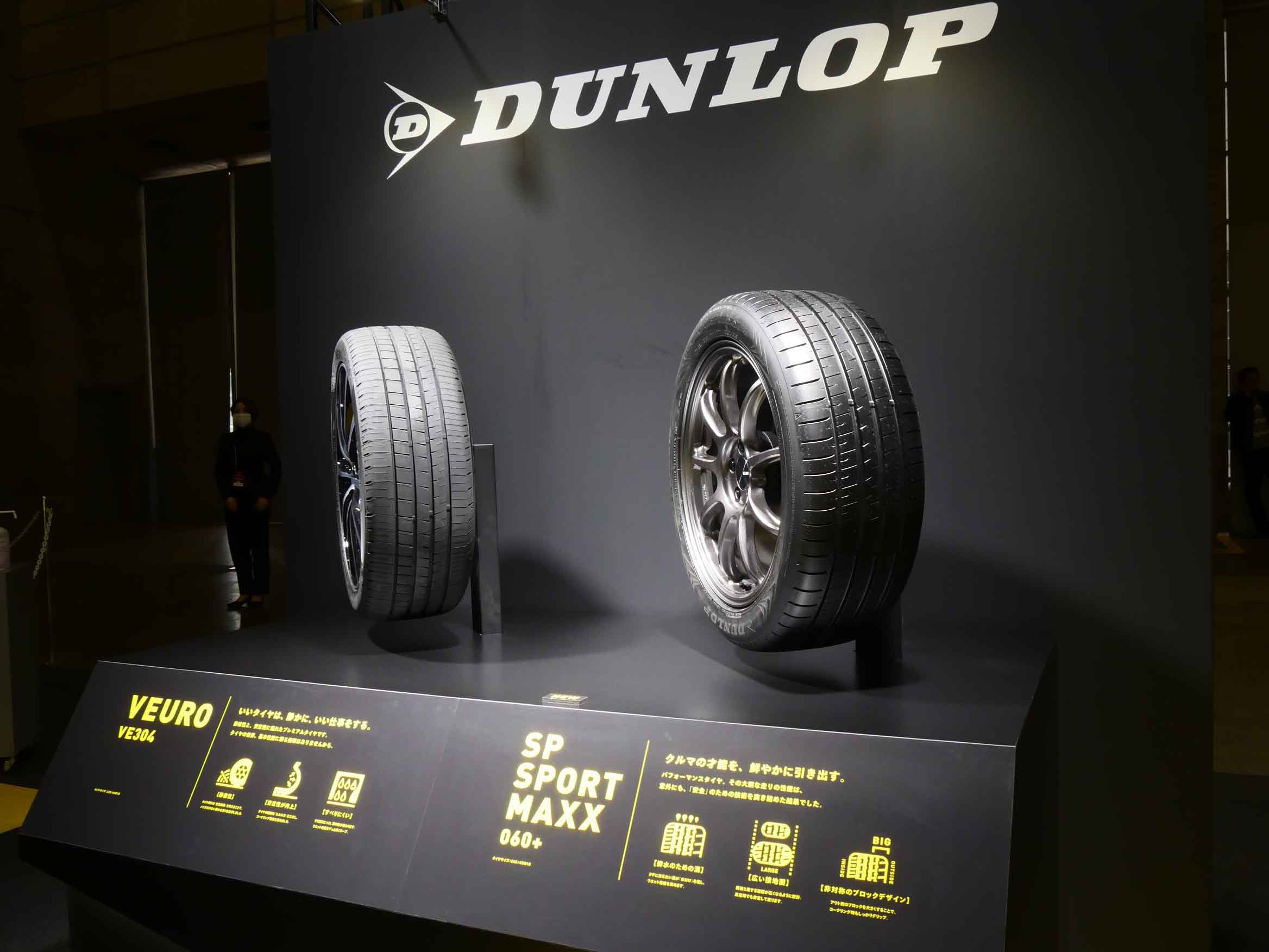 ダンロップでは「FEEL NEW DUNLOP」というテーマの元、“Nano Black”と呼ばれる最新技術や新製品SP SPORT MAXX 060+などが展示されています。