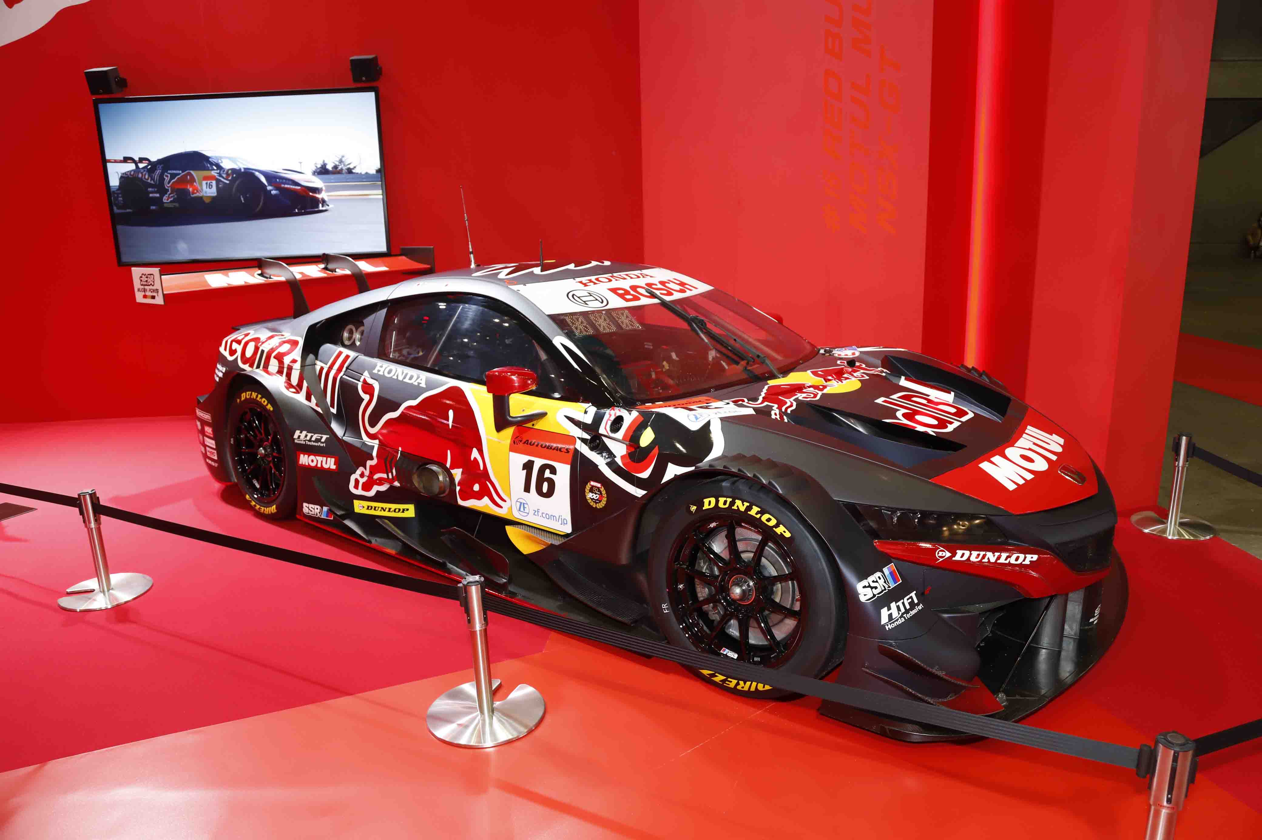 その隣には、同じく国内のトップカテゴリーであるSUPER GTシリーズのGT500クラスに参戦した16号車Red Bull MOTUL MUGEN NSX-GTが展示。2022年は笹原右京選手&大湯都史樹選手のコンビは2年目となり、表彰台獲得そしてシリーズチャンピオン争いが期待されます。無限ブースは2台のマシンを間近で撮影することのできる、貴重な機会といえます。