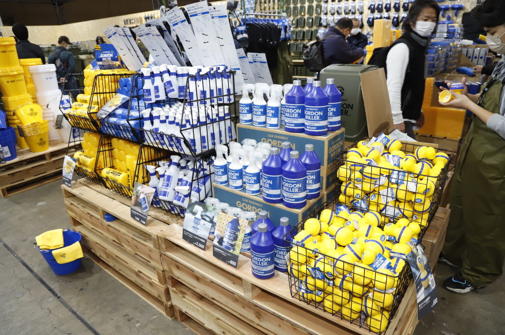 その隣では、オートバックスが展開するガレージライフ用製品の自社ブランド「GORDON MILLER(ゴードンミラー)」のブースを出展。愛車のメンテナンス時にあると便利なアイテムばかり、約200以上にもおよぶラインナップを誇り、来場者は各アイテムを実際に手にとって選び、購入することができます。