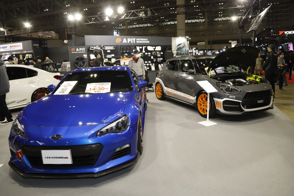 そのほか西ホール1には、オートバックスグループとしてのブースを出展。東京都江東区の『A PIT AUTOBACS SHINONOME』や、愛知県名古屋市の『スーパーオートバックスNAGOYA BAY』といった人気店舗がチューニングしたトヨタ86やスズキ・スイフトスポーツ、スバル・WRX STIなどのカスタム車両が展示されています。