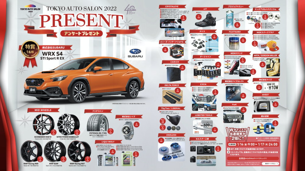 「TOKYO AUTO SALON 2022」では、毎年好評のアンケートプレゼント企画が開催されます。