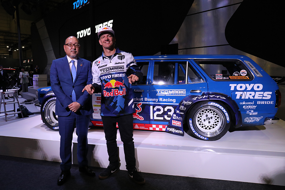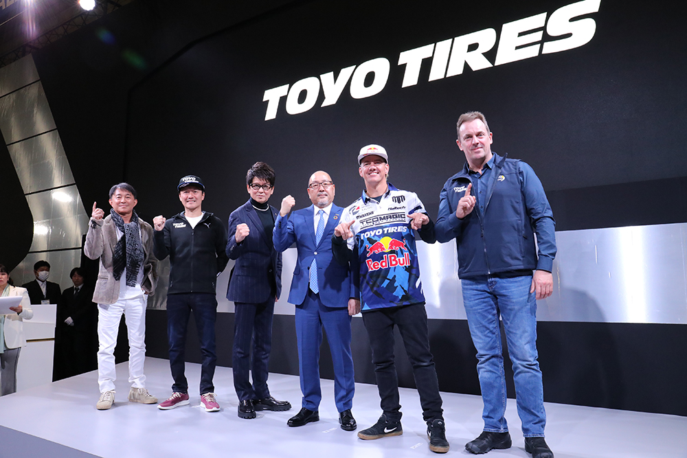 プレスカンファレンスには、「PROXES」ブランドアンバサダーを務める木下隆之氏、Team TOYO TIRES DRIFT の川畑真人選手、FLEX SHOW AIKAWA Racing with TOYO TIRES の哀川翔監督、ドリフトドライバーのマッド・マイク選手、ニュルブルクリンクでのレース活動を支えるリングレーシングのウヴェ・クリーン代表が登壇。会期中は、この方々のトークショーや、川畑選手とマッド・マイク選手のサイン会も開催。各日30名限定とのことなので、欲しい方はこの貴重な機会をお見逃しなく!