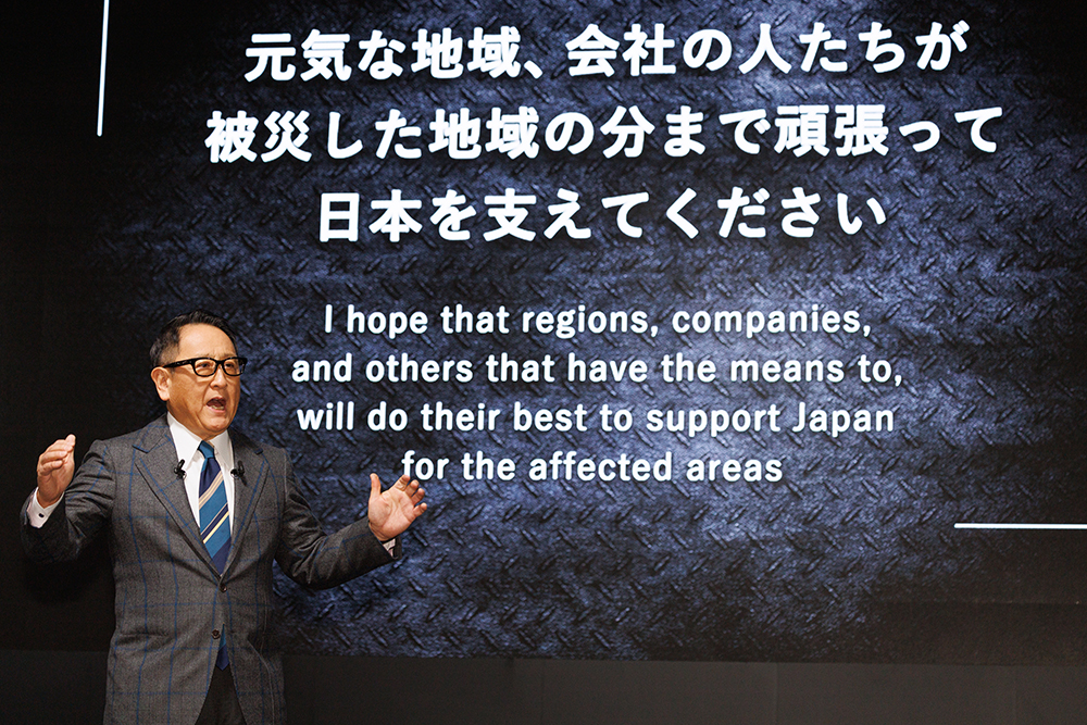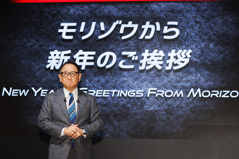 "豊田章男会長によるプレスカンファレンス"ではなく「モリゾウから新年のご挨拶」と銘打ってのステージです。