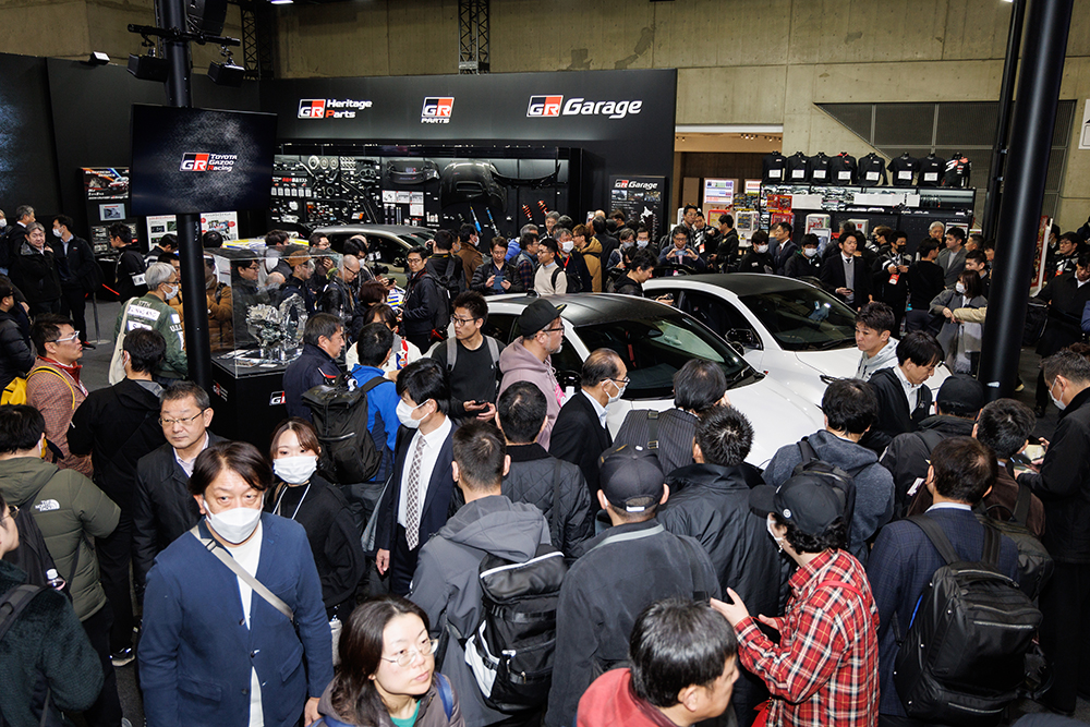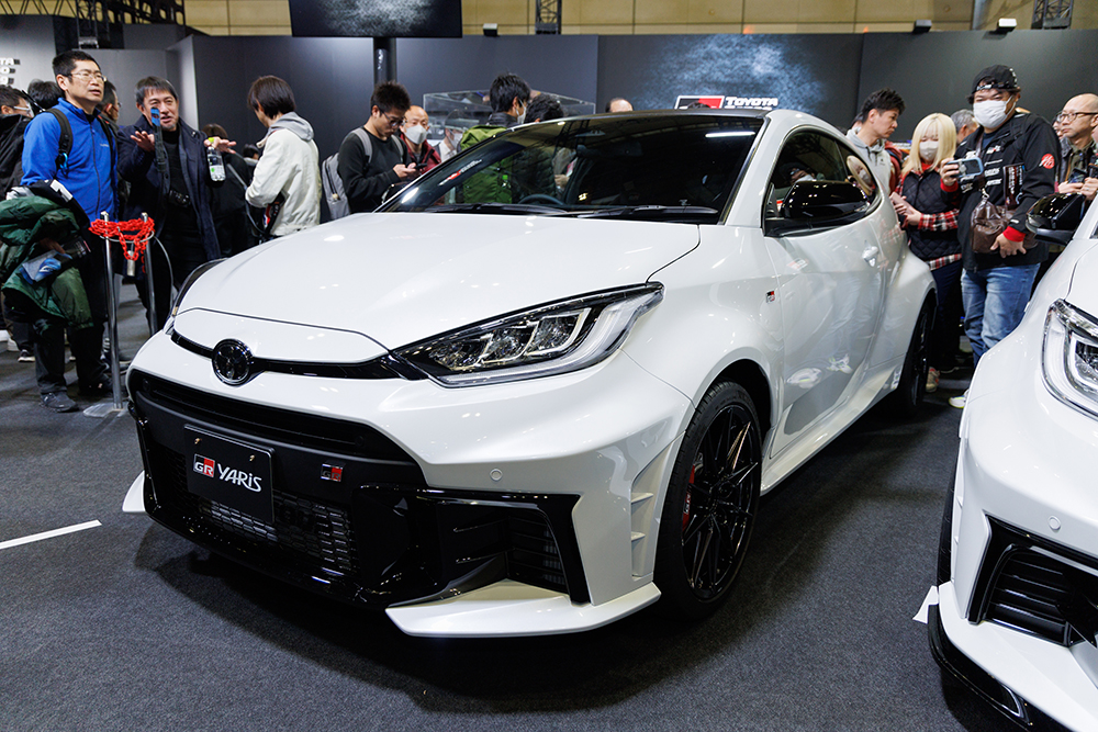 ワールドプレミアとして情報解禁になったばかりの世界戦略車両であるNew GR Yarisが、仕切りもなく触れられる状況に、みんなが大興奮のフロアでした。