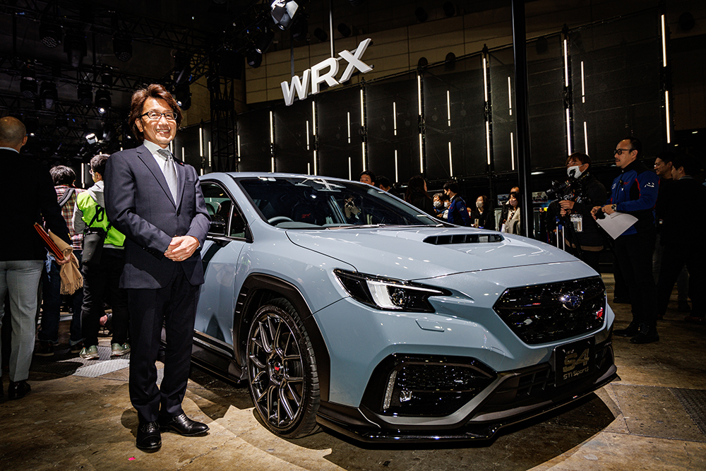 まず登壇したのは、WRX STI開発責任者の高津益夫氏でした。高津氏は辰己英治監督率いるニュル耐久チームや、その他各カテゴリーからの声をいち早くSTIの商品開発に活かしてきたマイスターです。