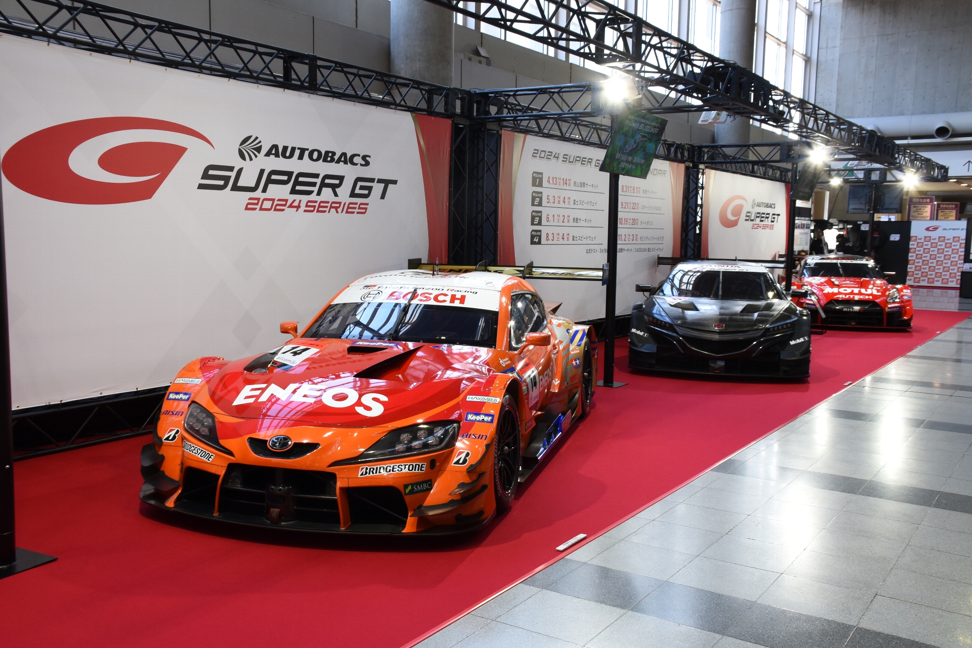 SUPER GTブースは今年もGT500マシンがお出迎え