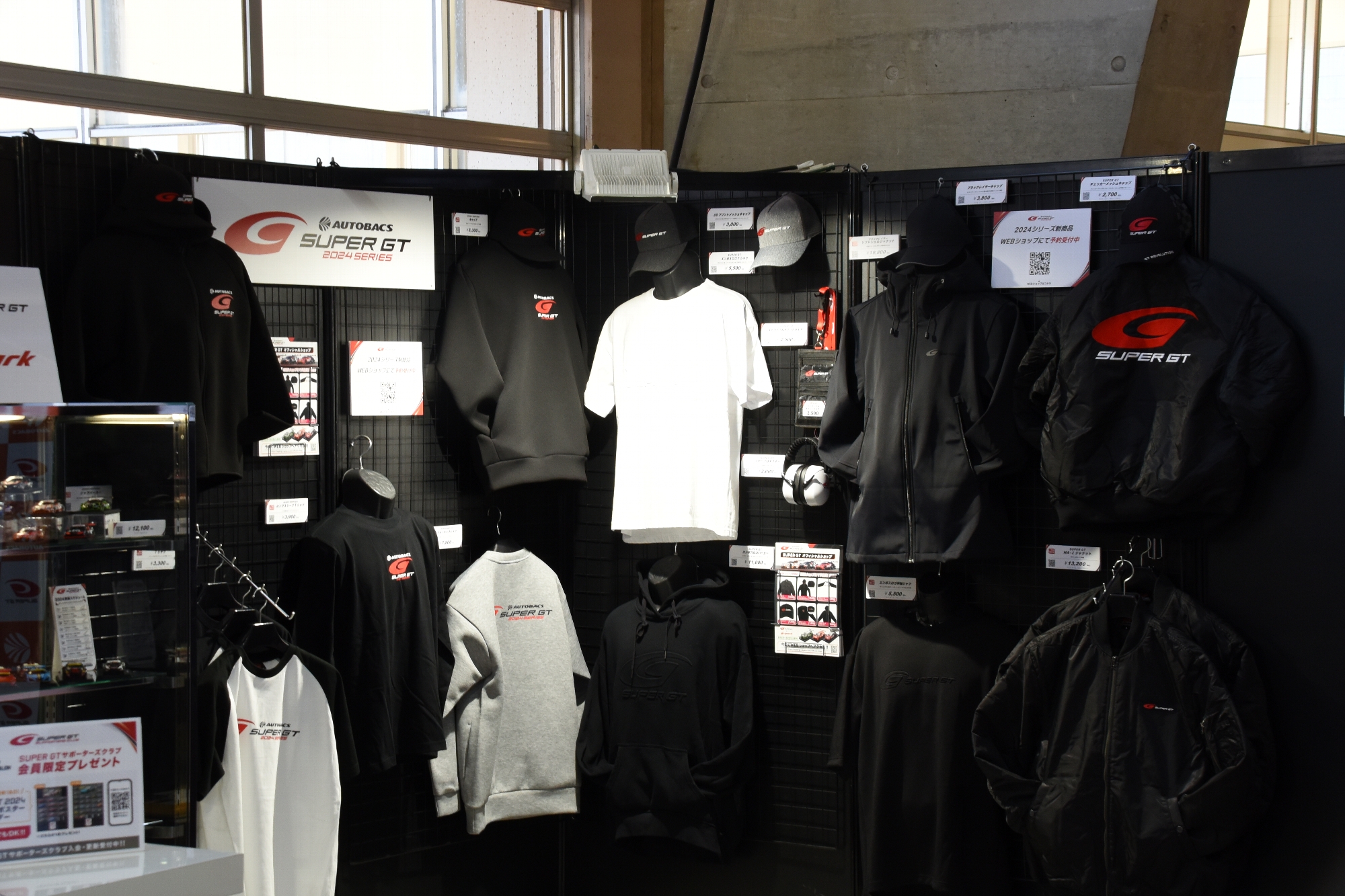 また物販はしないものの、今回からSUPER GTオフィシャルグッズの展示が行われるようになった。実際に商品を手に取って確認ができるようになったので、ここで品定めをして、自宅に戻ってから注文したり、開幕後に各サーキットで手に入れる際の事前検討に使ってみるのもいいだろう。