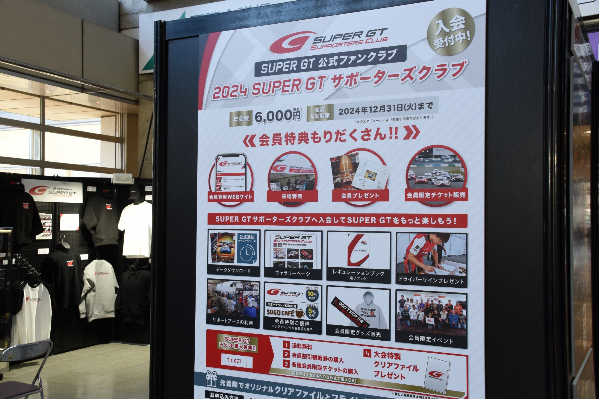 2024年のSUPER GT公式ファンクラブ「サポーターズクラブ」の入会受け付けを開始している。この「サポーターズクラブ」はオフィシャルグッズの割引販売や会員限定チケットの販売、そして観戦の際のサーキットでのサポートやプレゼントなど様々な特典が用意されているが、この会場では専用カウンターを設け、2024年度の入会相談会や入会キャンペーンを実施している。