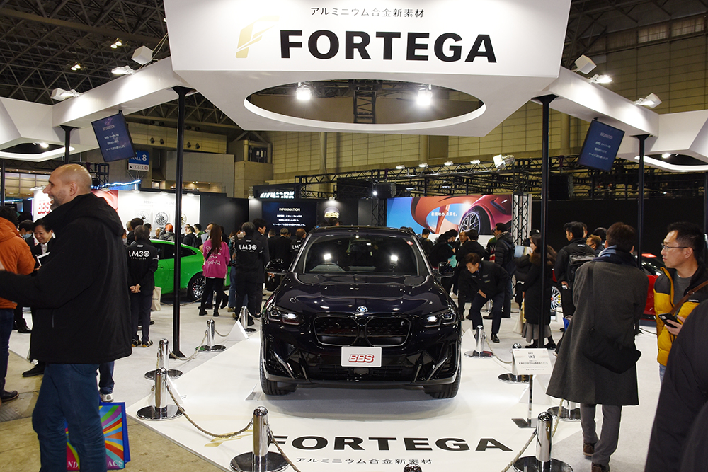前回の東京オートサロンでBBS ジャパンオリジナルアルミニウム合金新素材「FORTEGA(フォルテガ)」を発表したBBS ジャパン(東8ホール)ですが、今回もこのフォルテガを使用したBEV向けのコンセプトモデルとしてFORTEGA製鍛造ホイールを登場させています。
