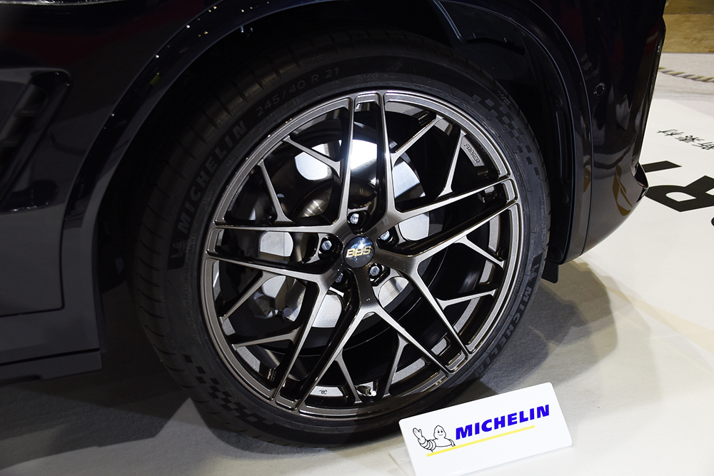 今回はBMW iX3に装着しているのが、その開発中のホイールです。ノーマルホイールよりも1インチアップ、0.5Jワイドなホイールにスポーティタイヤを装着するという一般的なカスタムの内容を盛り込んでも車両重量で28.2㎏も減少。1本あたり7kgもの軽量化を実現できるということです。タイヤ、試作・基礎評価を経て、現在は実走評価の段階に移っているということですが、開発エンジニアもテスト走行に参加するという気合いの入れようです。ちなみにこのコンセプトモデル、次回の東京オートサロンでの発売開始を予定しているということです。