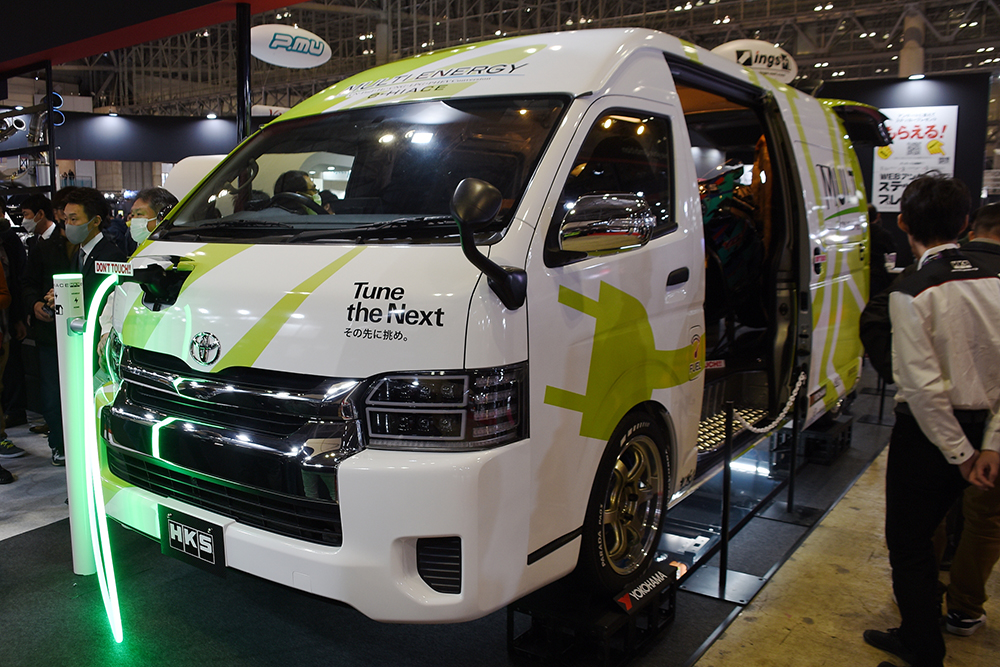 エッチ・ケー・エス(西1ホール)は「Tune the Next」をテーマに、これまでのカスタマイズだけでなく、電動化やカーボンニュートラル、サステナブルといった、これからの時代に求められるカスタマイズの提案を行っていました。