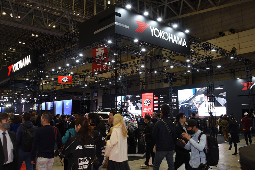 横浜ゴム(西ホール1)は、タイヤとホイールの2つのブースを出展。タイヤブースでは、「ADVAN(アドバン)」と「GEOLANDAR(ジオランダー)」ブランドの商品展示を行っています。