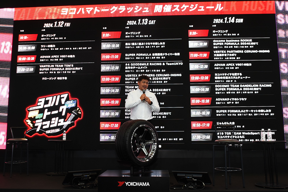 さらに今回は「YOKOHAMAトークラッシュ」と題し、同社史上最多となるトークショーを開催することとなっています。初日となる金曜日はラリートークショーも開催しておりましたが、この土日も、全日本スーパーフォーミュラ選手権やSUPER GTなどに参戦する多彩なゲストが続々と登場する予定です。