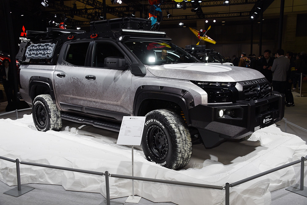 市販モデルとは別に、ブースの一番目立つ場所には、その新型トライトンをベースに、スノーシーンでの冒険をイメージした「トライトン SNOW SHREDDER CONCEPT」が展示されています。