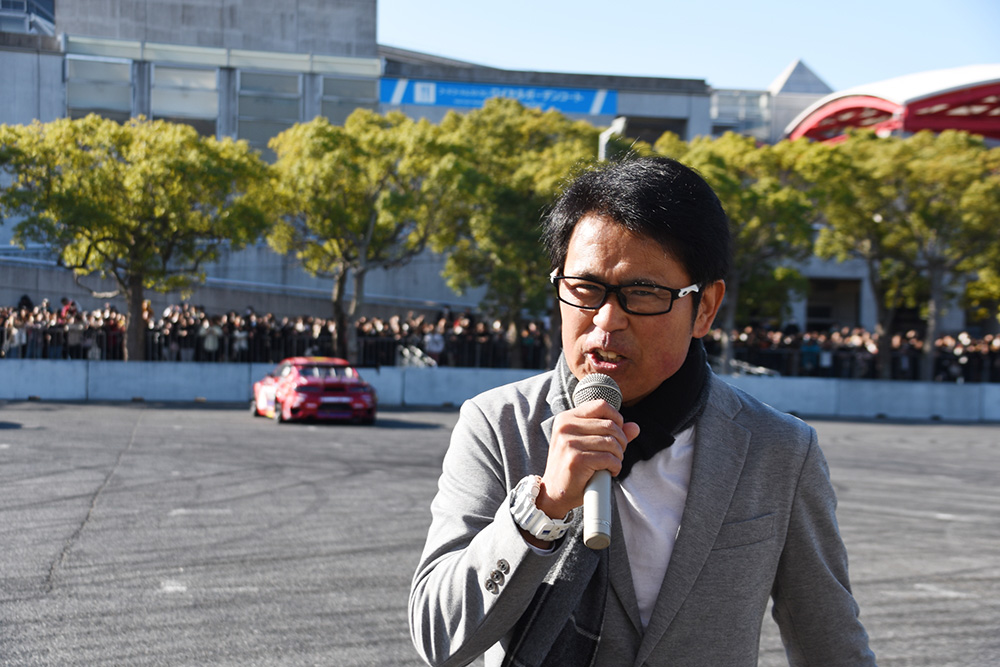 そのスタートを切るのが、「D1GP Kick Off Drift」です。2023年のD1グランプリシリーズ・チャンピオンの藤野秀之選手をはじめ、松山北斗選手、中村直樹選手、田中省己選手、蕎麦切広大選手、下田紗弥加選手が登場。もちろんこのイベントの司会はマナPこと鈴木学さん。
