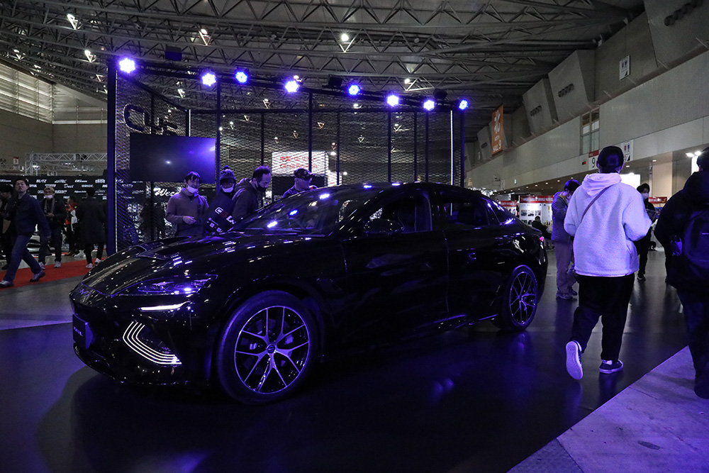 世界中で注目されているEVメーカーのBYDは、2023年度に続いて2度目の参加となりました。今年の注目車両は、現地でも上級セダンとして人気の「SEAL(シール)」。もちろん国内での実車展示は初めてで、昨年から日本国内で発売されている「DOLPHIN(ドルフィン)」と共に、この2台がブースに並んでいます。
