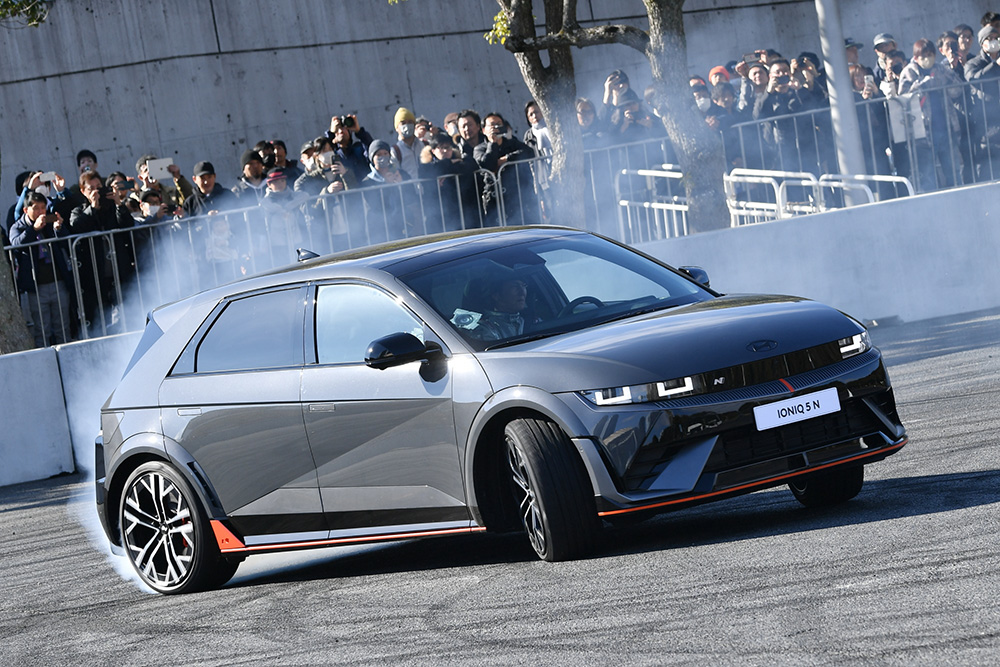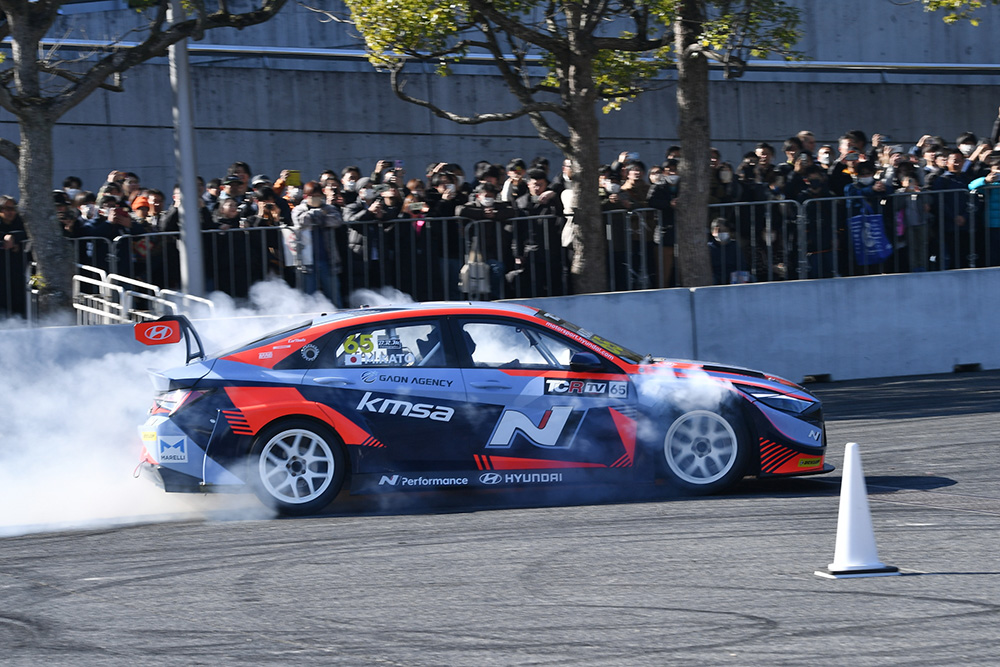 東京オートサロン2024屋外イベント会場では現代(ヒョンデ)のNブランドを紹介するデモンストレーションラン「N moment / Hyundai」が行われました。