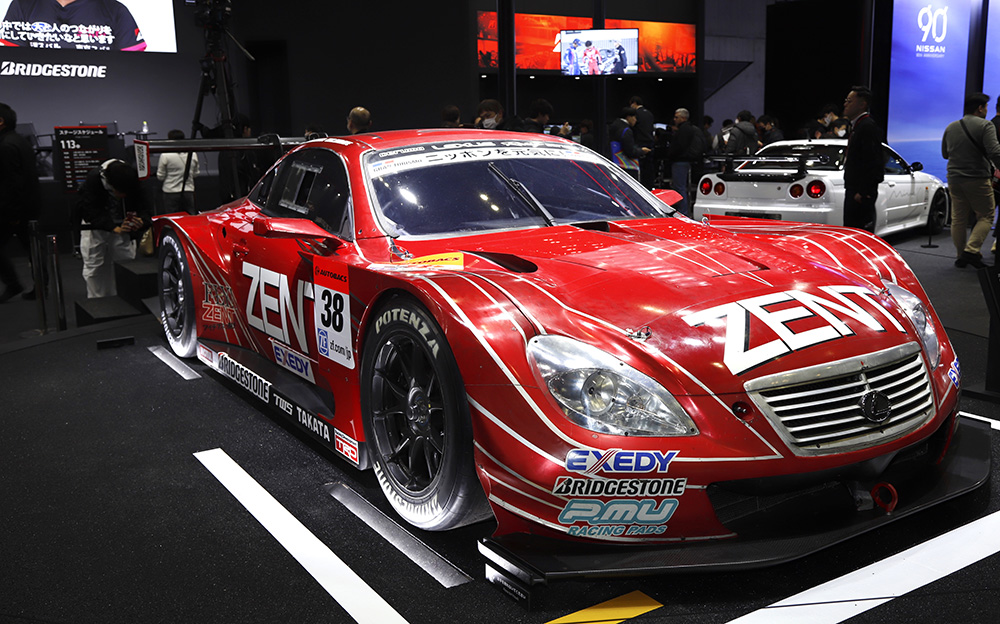 展示の中心となるのは、なんといってもスポーツタイヤブランドの「POTENZA」です。ブース内中央の特等席には、2013年のSUPER GT GT500クラスでシリーズチャンピオンを獲得した「ZENT CERUMO SC430」が飾られました。昨シーズン限りで引退を表明した、立川祐路選手がドライブしたこのマシンには、POTENZA RACING TIREが装着されています。