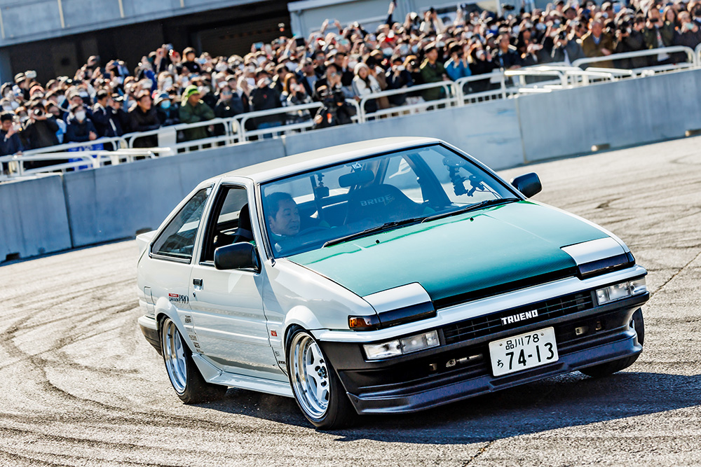 レジェンド・ツチヤのドライブに海外メディアの面々も興奮の雄叫びを上げるなか、初速では圧倒的にBEVハチロクが優勢な運びです。