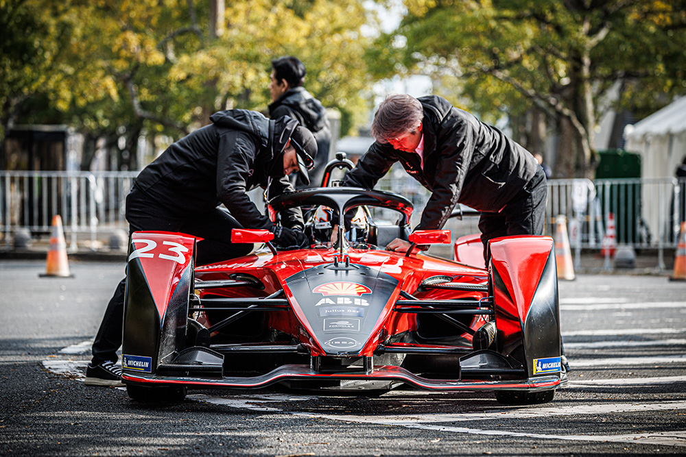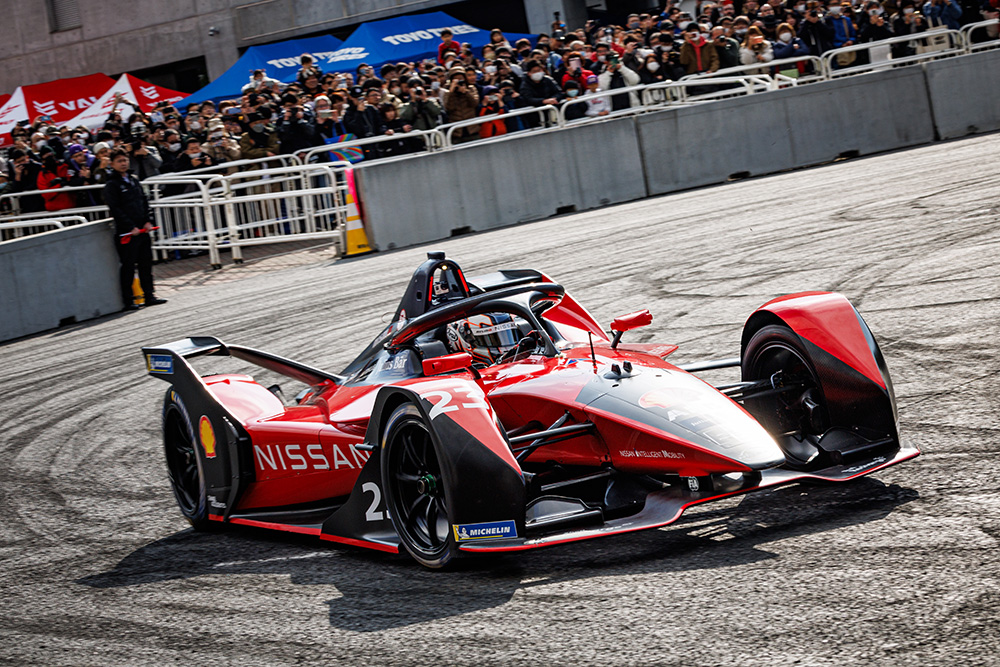 ABB FIAフォーミュラE世界選手権Season8まで実際に参戦していたNissan Fomula E車両(#23)のデモランが行われました。