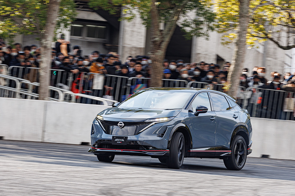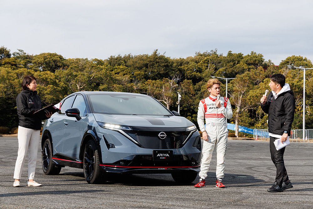 フォーミュラEマシンからNISSAN ARYAに乗り換えて、ふたたび静寂の電動車両が縦横無尽に駆け回りました。
