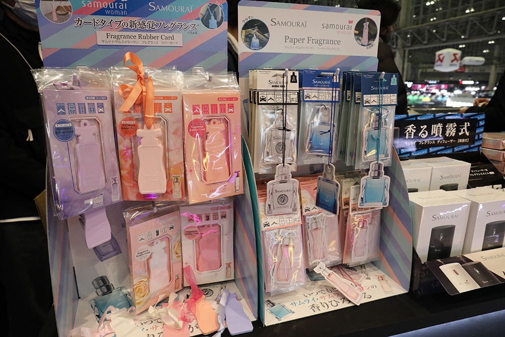 ブース内にはそれぞれの香りを噴霧式で体験できるコーナーも設置されているので、初体験の方でも必ずお好みの香りが見つけることができるだろう。また、ブース内は1回の入場人数制限を設け、ゆっくりとショッピングが楽しめるように配慮されている。車内だけではなく自宅室内でも楽しめ、かつ男性が求める香りも用意されている「SAMOURAI(サムライ)」。自分の身の回りを、オシャレな香料で満ち溢れさせるカーライフにおすすめだ!
