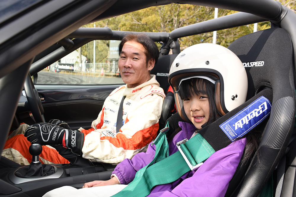 MAZDA NDロードスターのレース車両には、ロールケージやフルバケットシートなどの安全装備がしっかり装着され、今回特別にBRIDE社が子供たちのためにキッズ用フルバケットアタッチメントシートを制作してくれました。