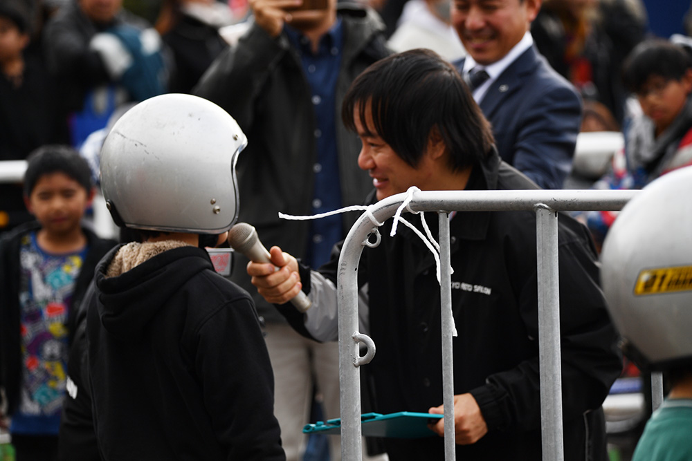 走行後のインタビューにはみんな少し緊張気味で、言葉がなかなか出ないちびっ子もいましたが、みんな「たのしかった」と笑顔を見せてくれました。