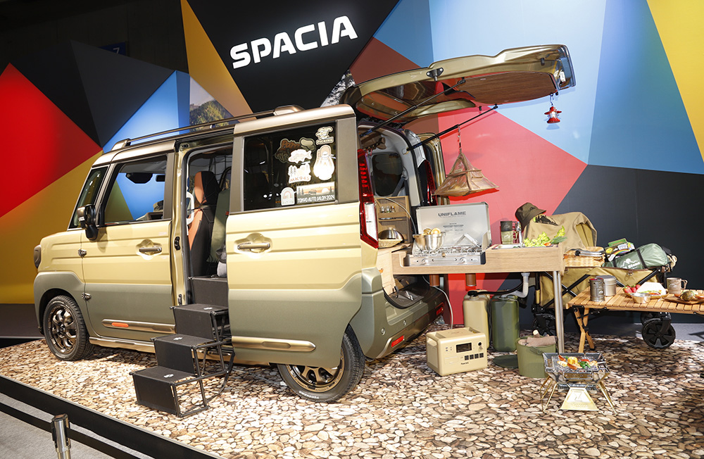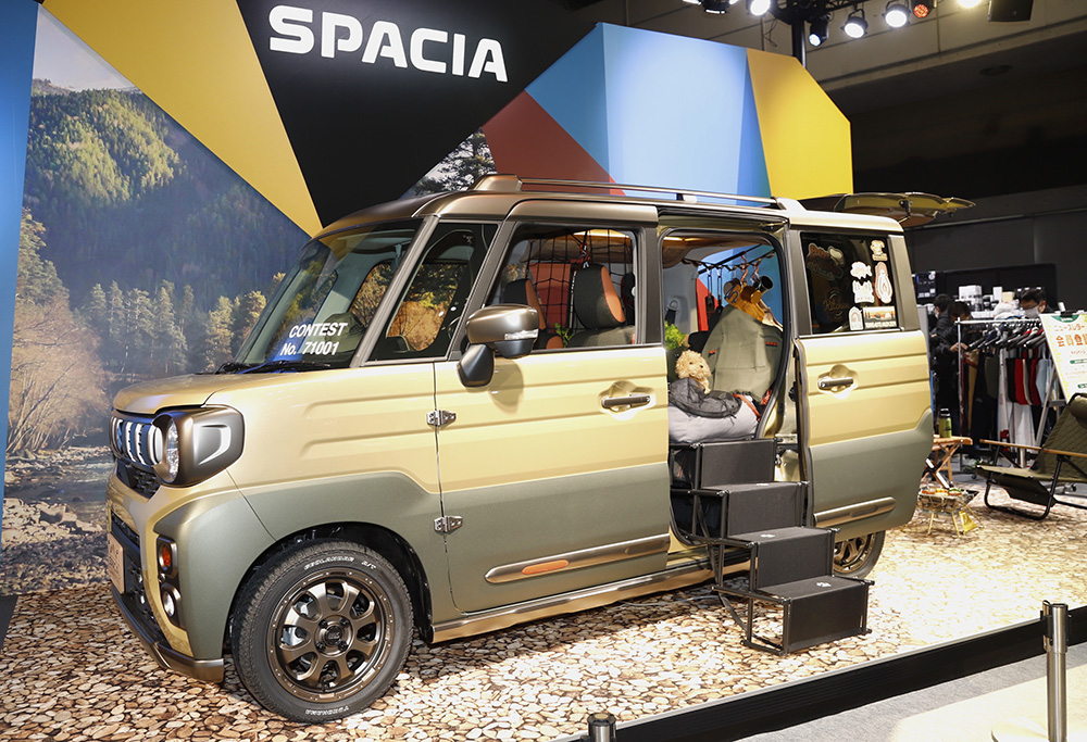 そのほかにも市販モデルのスーパーキャリイや、ハイトワゴンのソリオバンディッド、そして軽スーパーハイトワゴンのスペーシアカスタムといった人気車種が並んだブースとなっています。