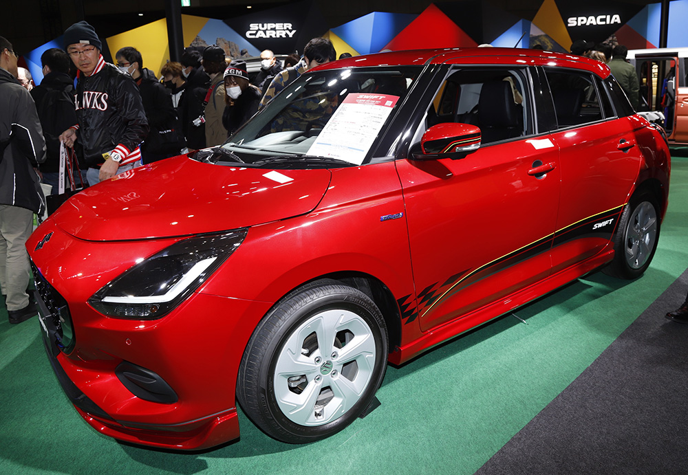 東京オートサロン2024のスズキブースは、見逃せない注目モデルがいっぱい。まずはスズキのコンパクトハッチバック、新型スイフトは2台が展示されています。