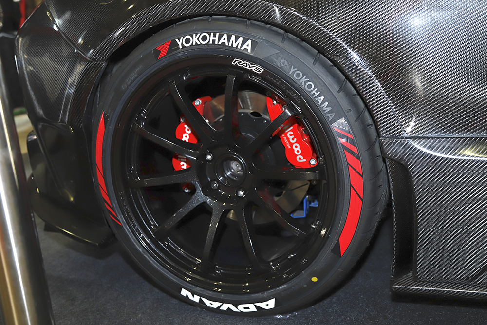 脚まわりはDG-5ドリフトスペック車高調にSWIFT製スプリングの組み合わせ。ホイールはRAYS製CE28Nプラス、タイヤはYOKOHAMA ADVANネオバAD09を装着しています。