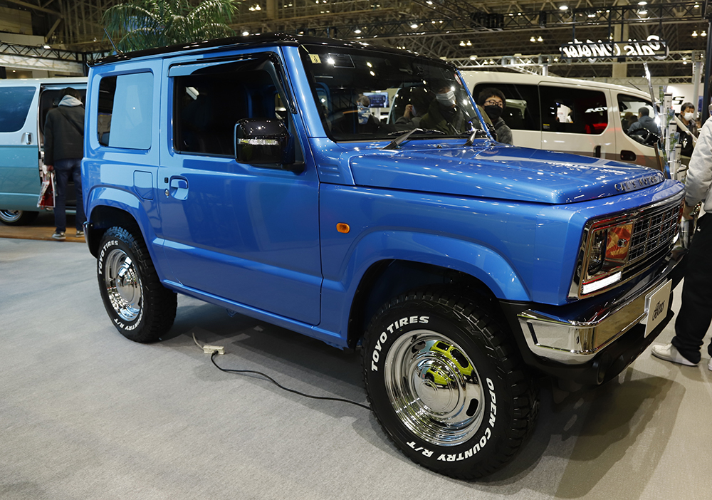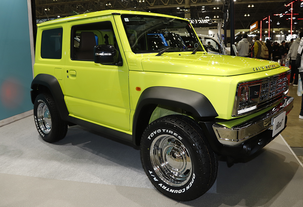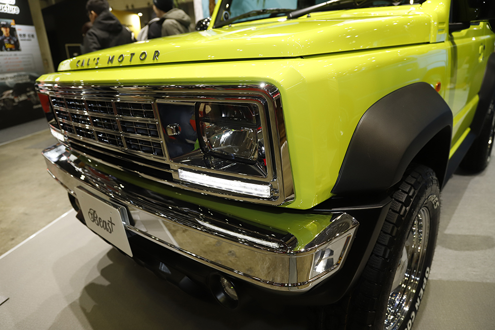 キャルズモーターのラインナップ中、もっともコンパクトなモデルとなる「ベアス」および「ベアスプラス」は、それぞれジムニー&ジムニーシエラをベースにしたカスタムモデル。キャルズモーターという名称の由来でもある、カリフォルニアの海岸線を走る、ネオクラシックなアメリカンSUVをイメージしたデザインが特徴です。