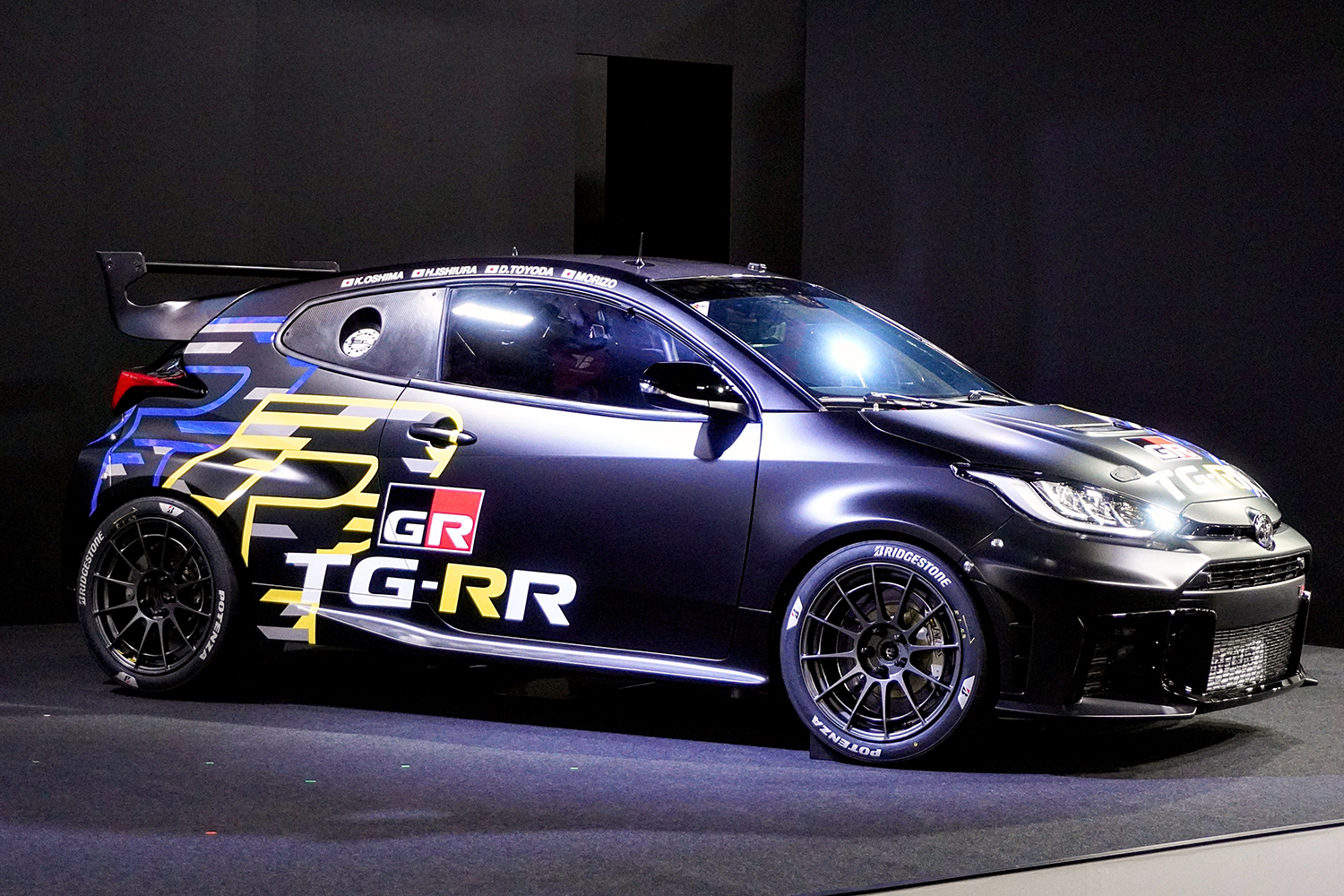 3位は、TG-RRと表記の“R”が増えたことを発表。同時にモリゾウ選手のニュルブルクリンク24時間復帰も明かされ、参戦車両のGRヤリスもお披露目されました。ボディには「TG-RR」のペイントが施され、トヨタGAZOOルーキーレーシングの名でエントリーするようです。
